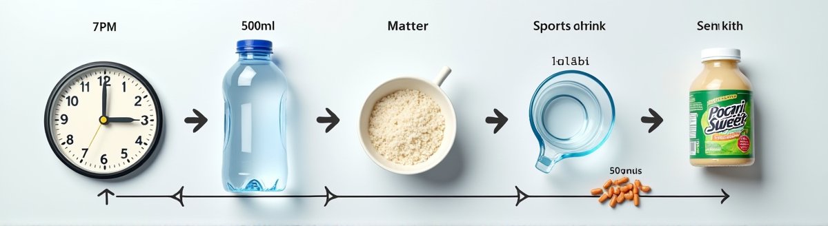 - 이후: 1시간 내에 물 또는 무색 이온음료(포카리스웨트 등)를 1L 이상 추가로 마셔줍니다.