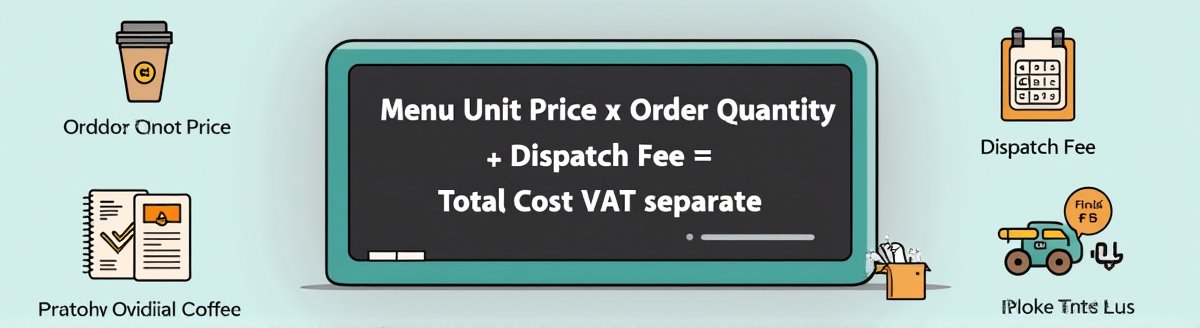 > ✅ (메뉴 단가 × 주문 수량) + 출장비 = 총비용 (VAT 별도)